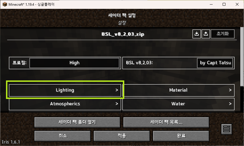 소듐 > 기본 = 소듐 + 셰이더