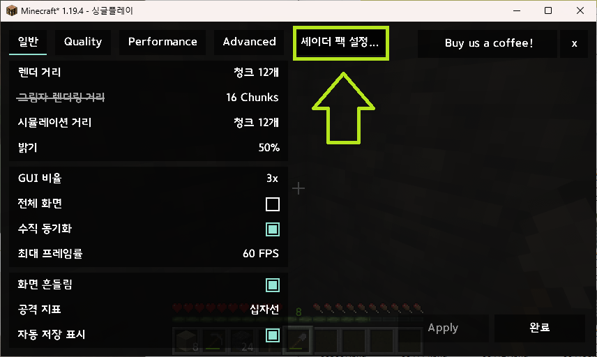 마인크래프트를 최적화해 주는 모드다. 렉이 정말 현저하게 줄어든다.